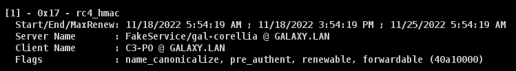 • For the other account, Qi-Ra, we can see that the ticket obtained is in RC4 because only RC4 is supported (the “23” at the beginning of the obtained string).