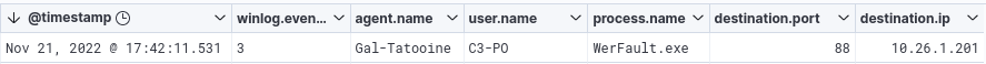 However, let’s take the /rc4opsec parameter for example, we can observe that by changing the options, given that the ticket request is made directly from the Rubeus code and not from a function provided by the Windows API, the traffic will be associated with the sacrificial process launched by our beacon, WerFault.exe here, as our current user C3-PO :