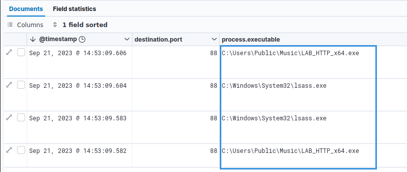 As described before, Lsass.exe is the main process initiating Kerberos network trafic. While we can not apply Fork and Run on Lsass.exe (that wouldn’t be really stealthy at all), we can bypass the rule defined by Elastic: