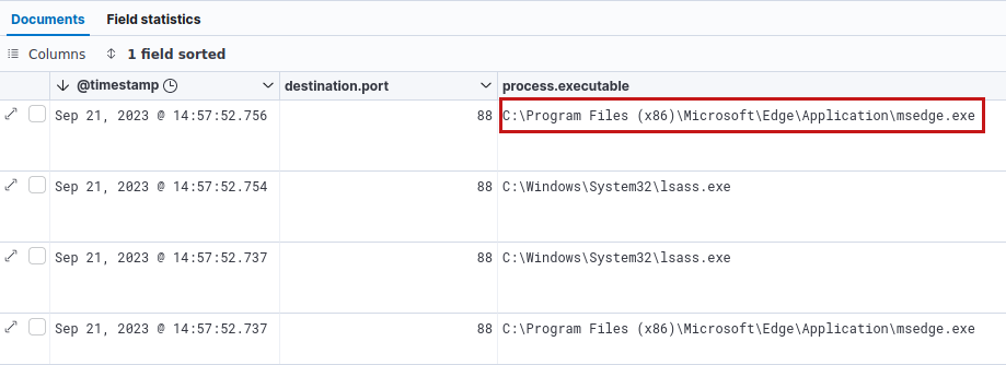 We then can observe that the process that creates the Kerberos connection is C:\Program Files (x86)\Microsoft\Edge\Application\msedge.exe: